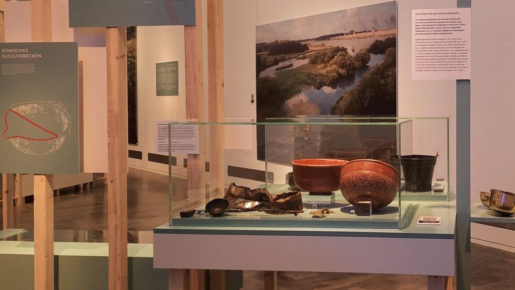 Von der späten Eisenzeit (ca. 150–50 V. Chr.) bis zur späten Völkerwanderungszeit (um 500 n. Chr.) werden interessante kulturübergreifende Begegnungen wiedergegeben. Im Mittelpunkt der Erzählung stehen die damaligen Einheimischen, die oft noch mit der römischen Bezeichnung „Germanen“ bezeichnet werden. Deren Perspektive auf das Leben mit dem Limes und den Römern ist Ausgangspunkt der Betrachtung. Über 400 Exponate aus Nordrhein-Westfalen zeigen die Umstände und Erlebnisse der damaligen Menschen auf. In Zusammenarbeit mit der Bodendenkmalpflege Nordrhein-Westfalens können neue aber auch alte spannende Funde in einer noch nicht da gewesenen Zusammenstellung gezeigt werden.