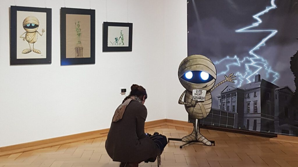 Das Museum präsentiert mit Unterstützung der Lippischen Museumsgesellschaft Arbeiten des Cartoonisten André Sedlaczek. Er gilt als Spezialist für Cartoons zum Film. André hat Klassiker wie Star Wars, Herr der Ringe und Game of Thrones aufs Korn genommen, die bereits in Buchform erschienen sind. Für den renommierten Carlsen Verlag sezierte der freiberufliche Cartoonist, Comic-Zeichner und Kinderbuchautor bissig und humorvoll Weihnachten. Die Ausstellung zeigt einen Überblick der Cartoons zum Film und seinen satirischen Blick auf Weihnachten.